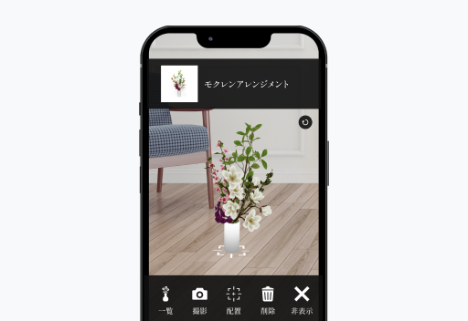 - AR機能のご利用は、光が強すぎる場所・壁や床など背景が全て同じ色や模様で、区別が付きづらい空間・配置空間が狭すぎたり、近すぎる空間・移動されている場所では動作が困難となります。