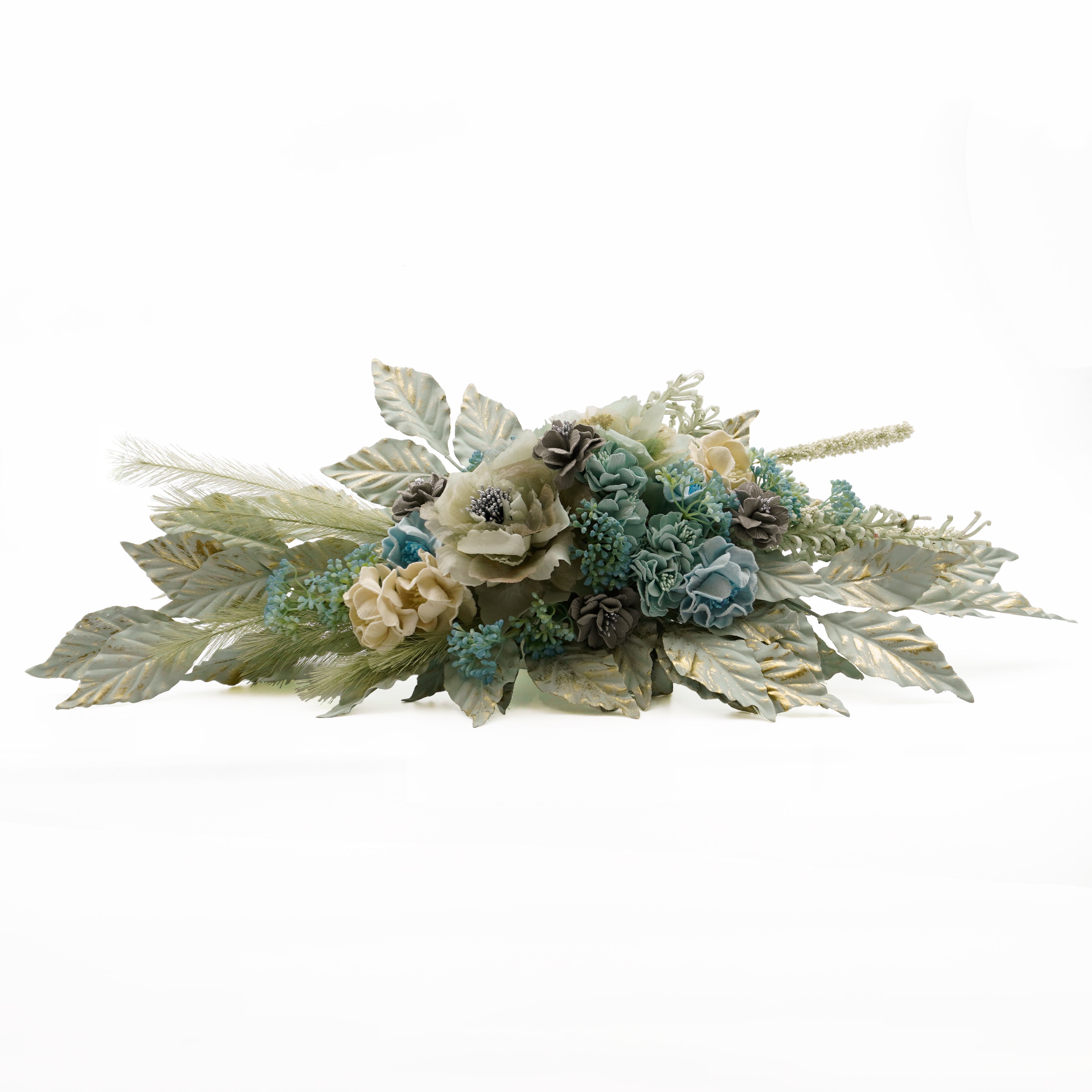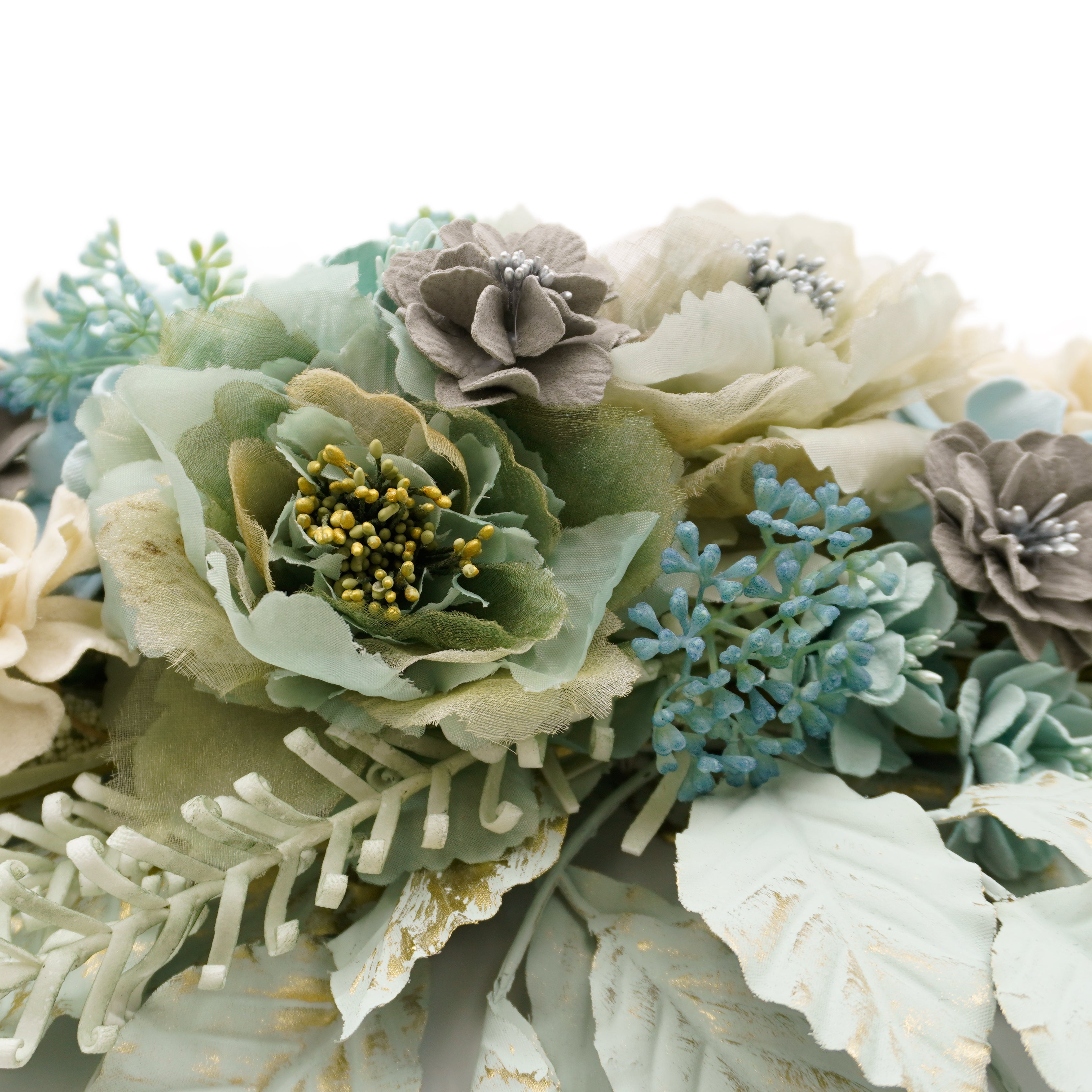 この秋を彩る、美しいペパーミントカラーのスワッグ。壁掛けとしても、置いてテーブルコーディネートの演出にも活用いただけます。落ち着いた色合いのピオニーやブロッサム、ベリー、リーフが華やかに調和しています。上質な素材とエレガントなデザインで繊細さや上品さを演出し、秋の季節の魅力を存分に楽しめます。