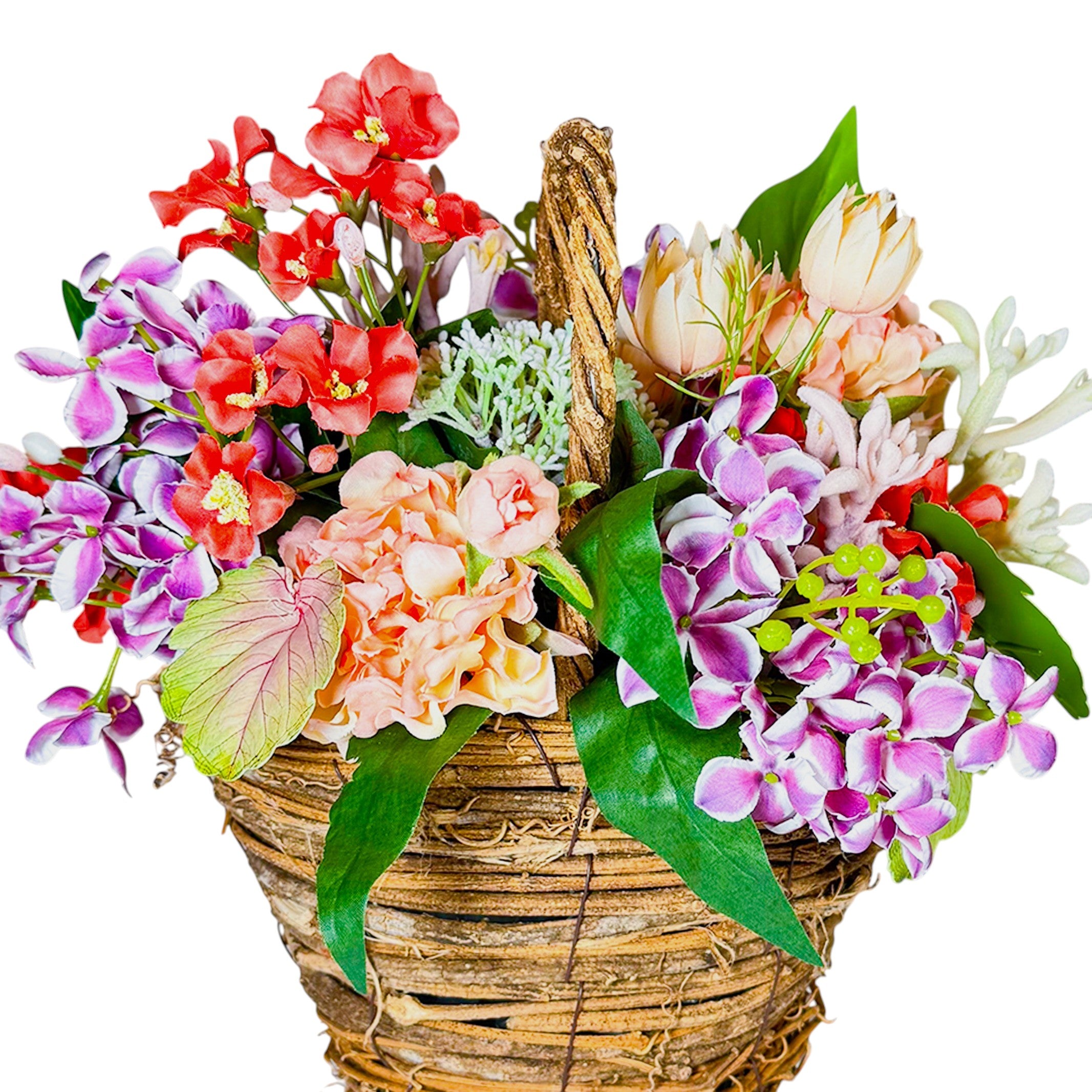 彩りを添えたい多様な空間にフィットする万能デザイン。ギフトはもちろん、お部屋や店頭、オフィスを華やかに彩りたい時にもおすすめです。〈付属品:バスケット 注:天然素材のバスケットのため、多少歪んで見え、傾いている場合がございますが、良品ですので、返品交換対象外となります〉