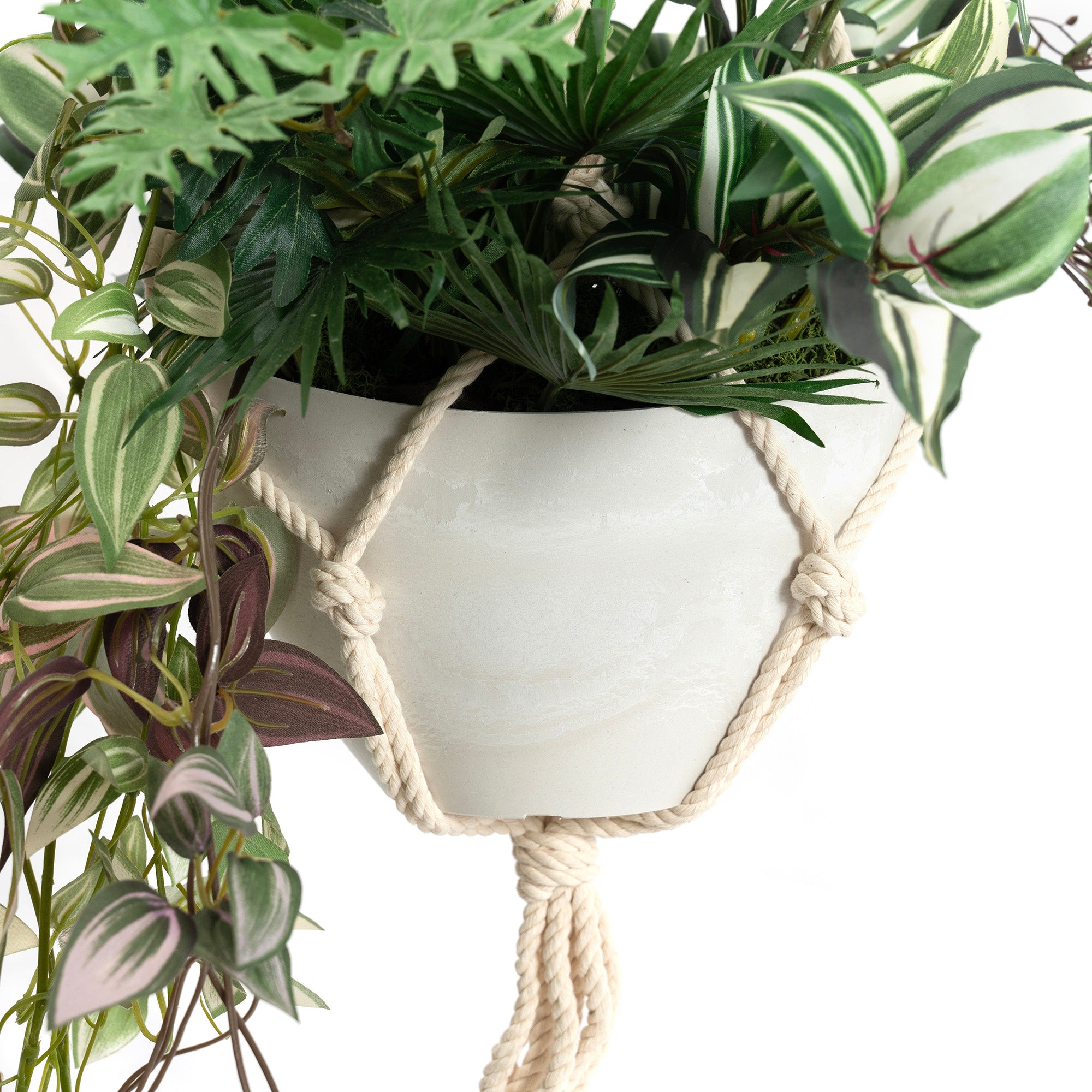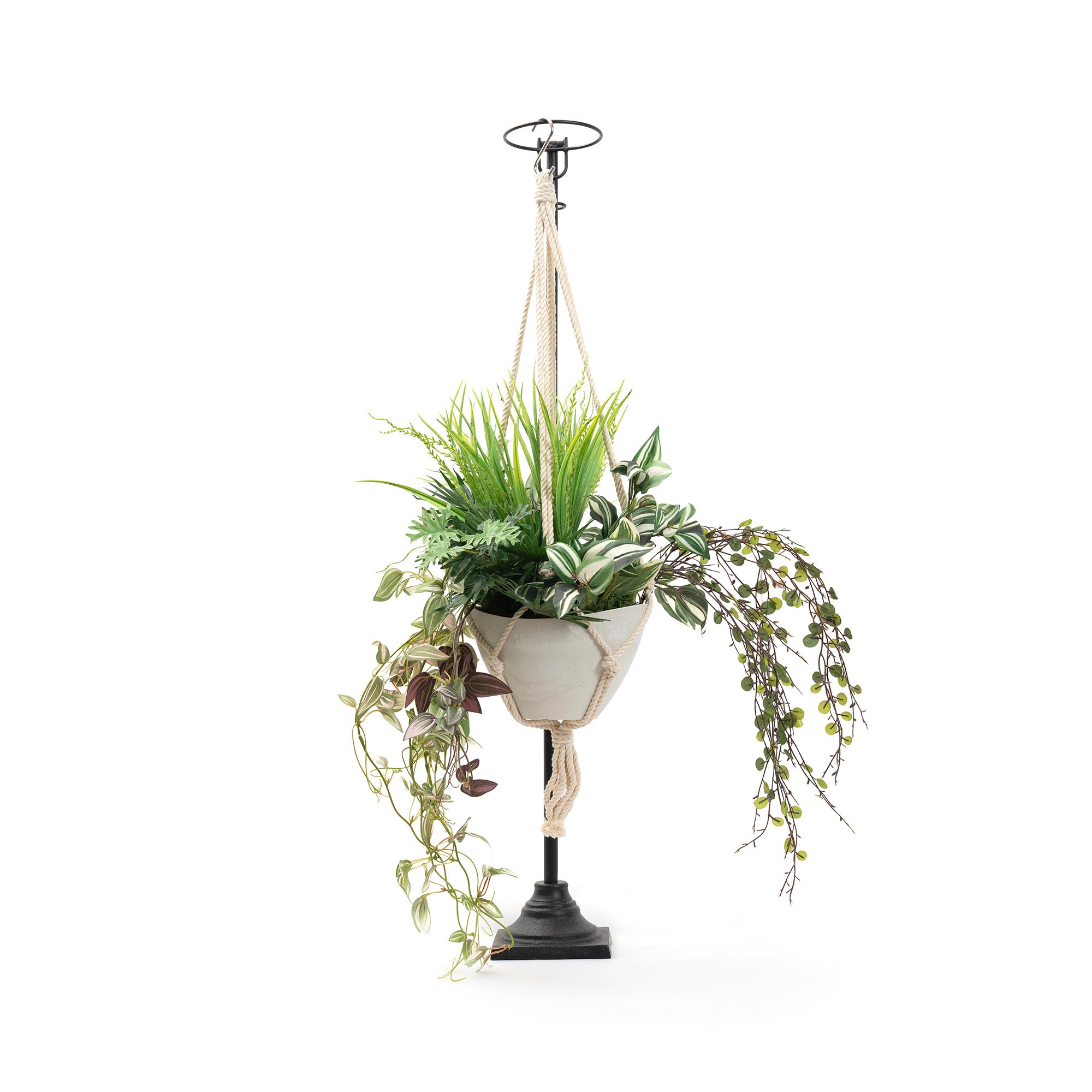 - 花材:ワンダリングジュ―・ディフェンバッキア・ワイルドグラス・ボタンリーフ・トラディスカンティア 資材:ハンギングポット
