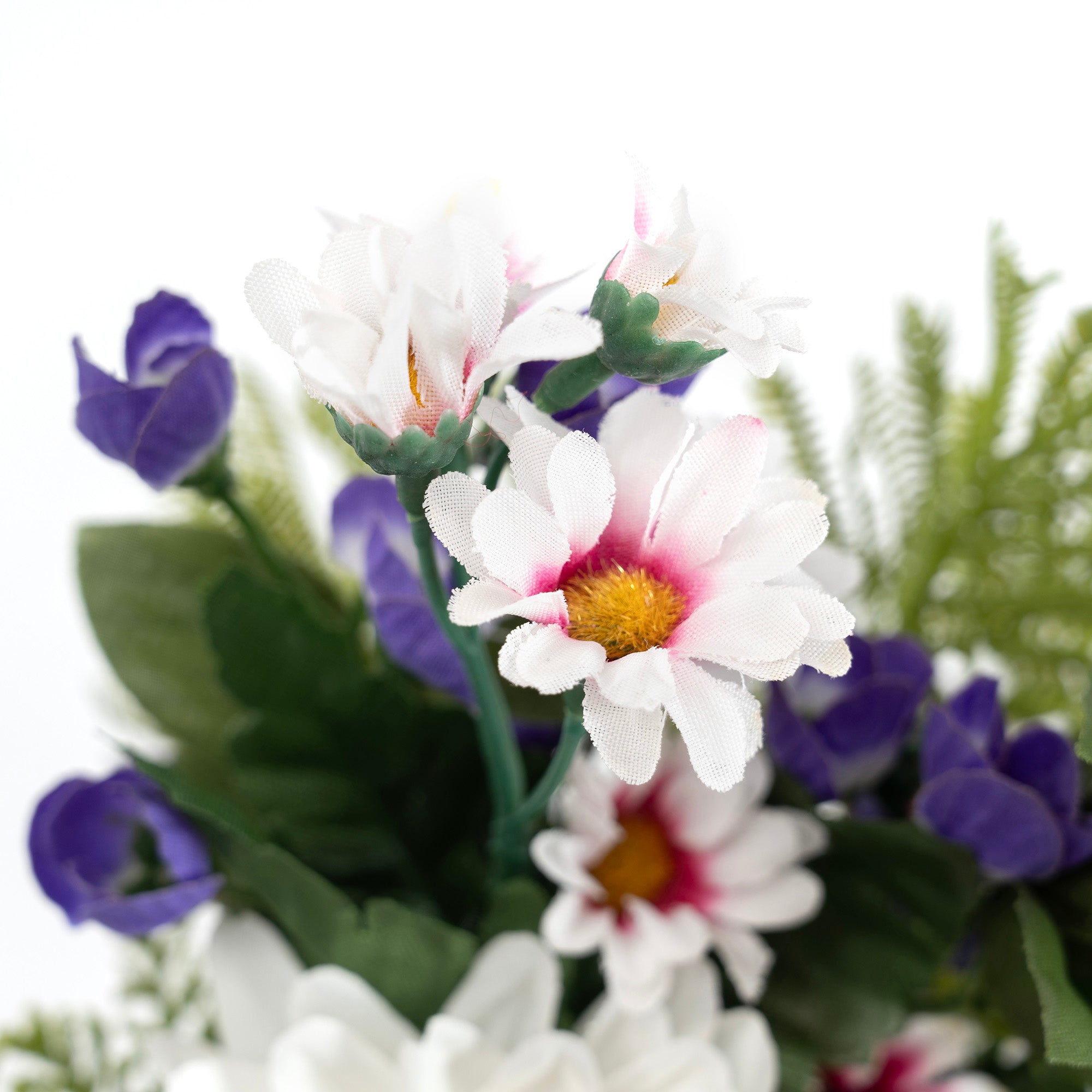 現代のインテリアや仏具にもマッチする華やかな仏花です。生花は夏場や長期不在時に枯れたり、臭いの心配がありますが、アーティフィシャルフラワーは美しさそのままで、お手入れが手軽です。花言葉が「信頼」「高貴」である菊や、「無垢で深い愛」と言われるカーネーションなどが上品にアレンジされています。生花を頻繁に買いに行けない高齢の方や、お彼岸やお盆をはじめとした仏壇などに重宝するアレンジメント。<注:花器は付属しません>