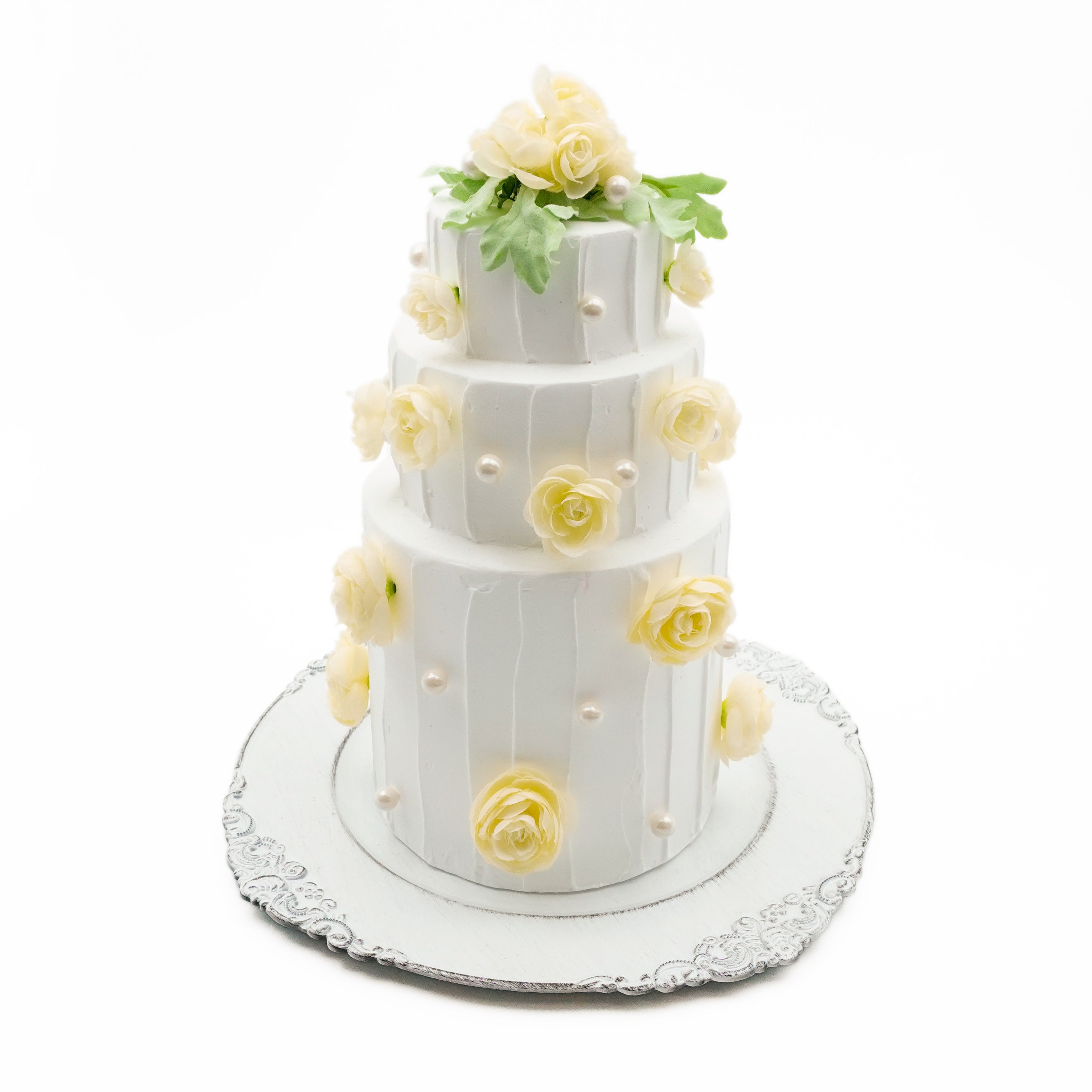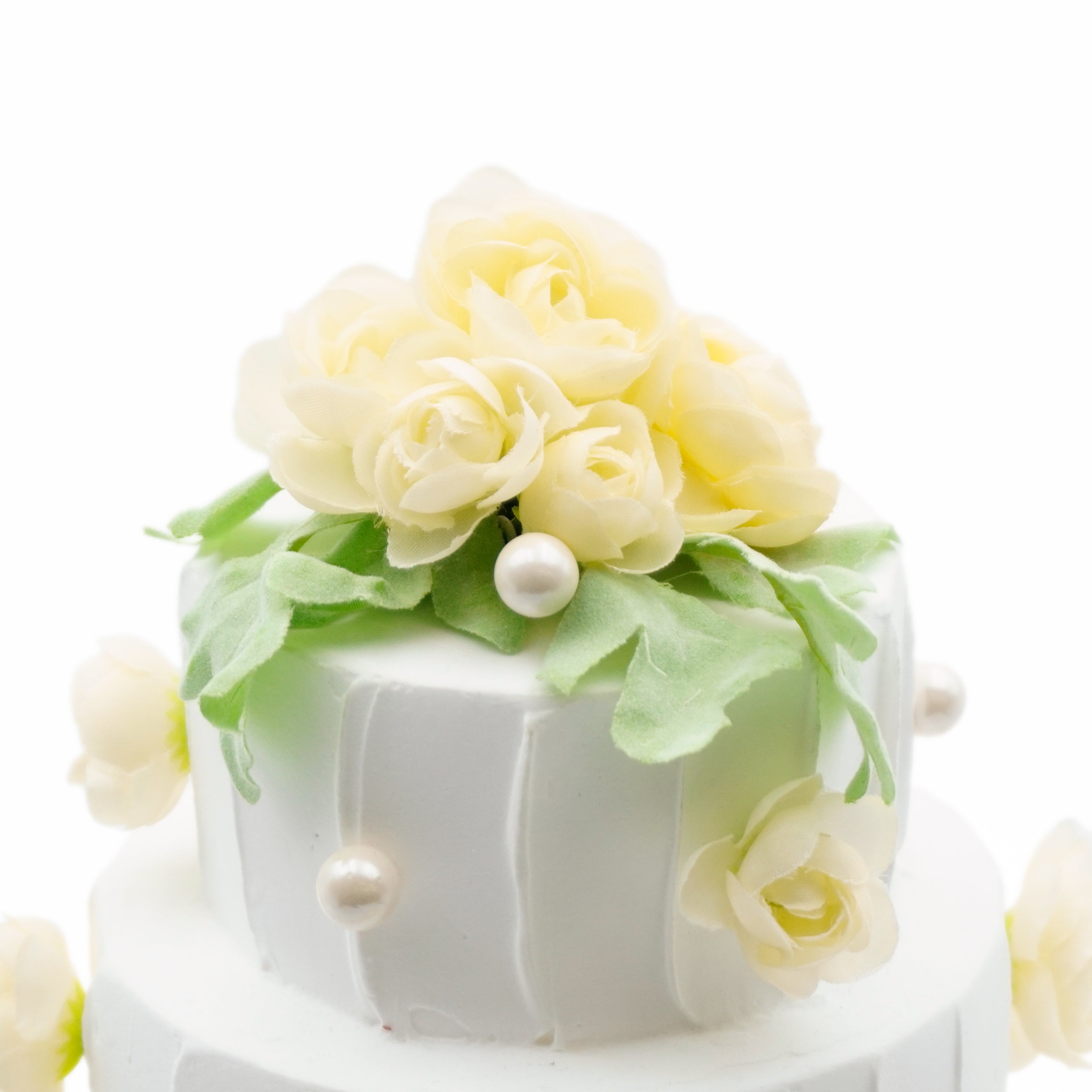 花言葉は「恵み」や「魅力」と伝えられているクリームホワイトローズ。フレッシュでいて、魅惑的なローズとフェイクパールが3段のホワイトケーキを彩る存在感のあるクレイケーキ。温もりさえ感じさせるクリームホワイトローズは、お子様から大人まで世代を問わず様々な方に相応しいので、誕生日パーティーやウェディングなど華やかなシーンでお使い頂けます。<注:ケーキ台は付属しません。この商品は食べられません>