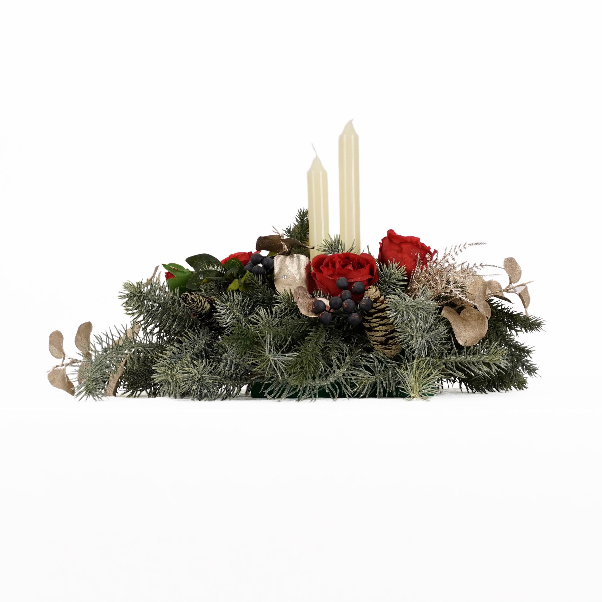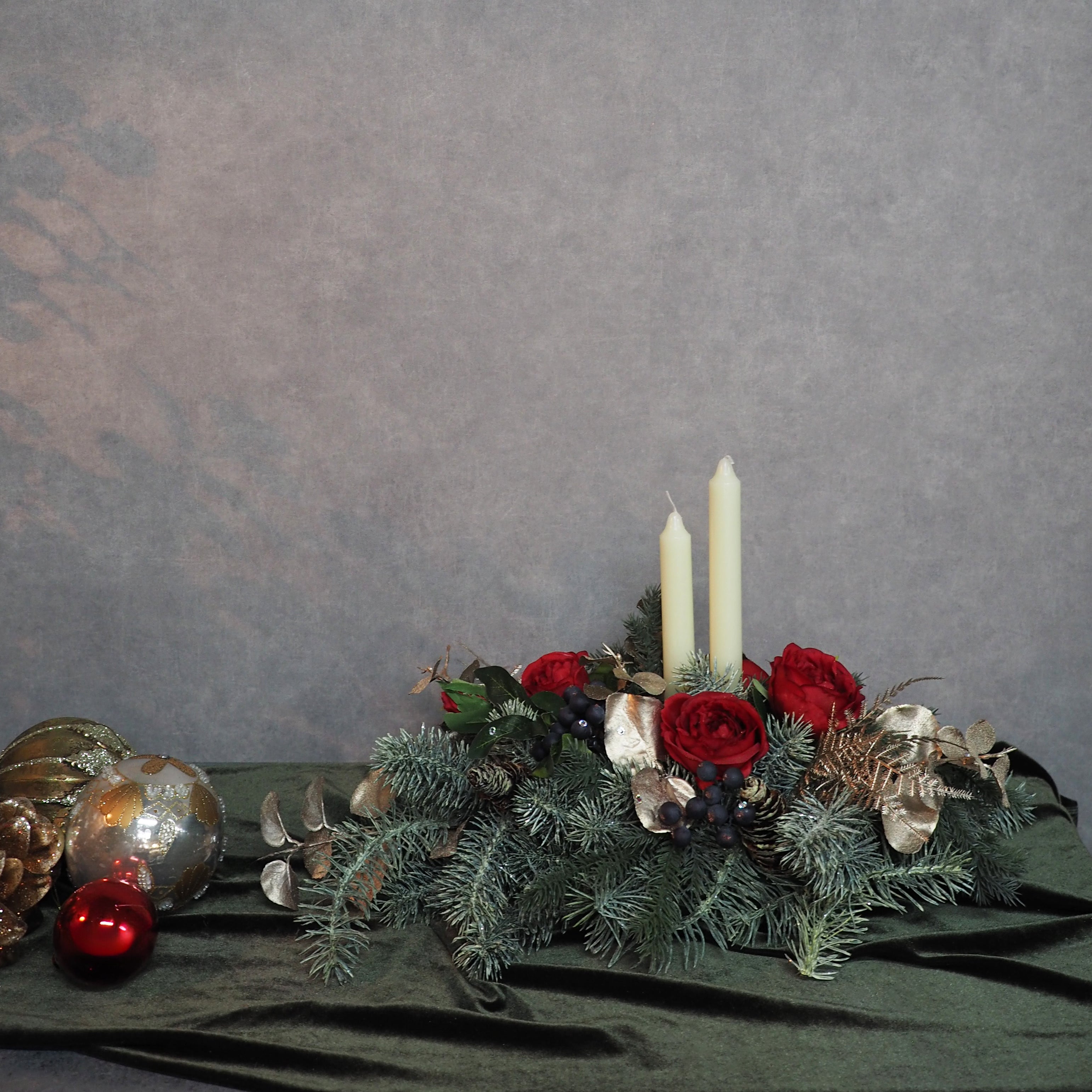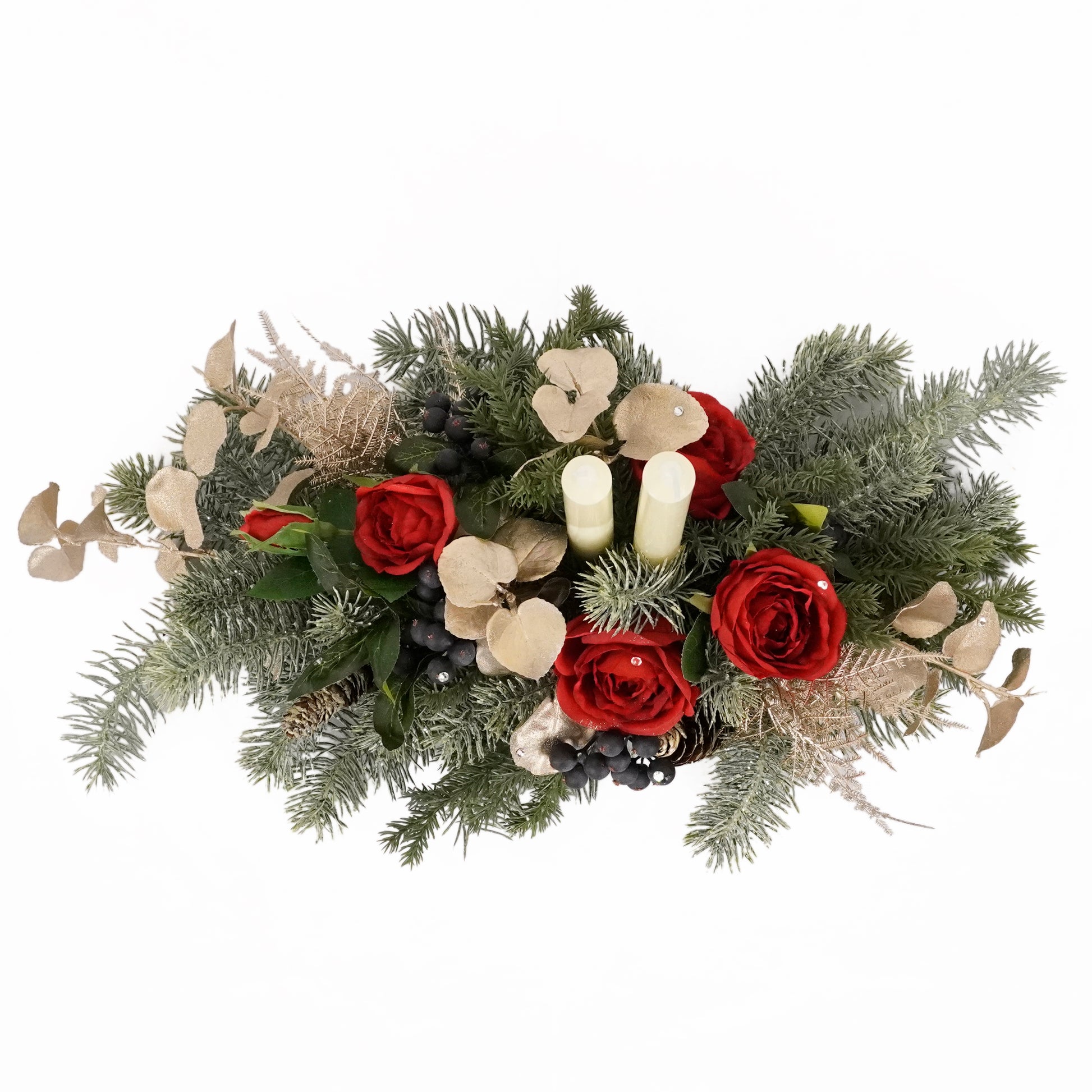 エレガントな薔薇の花が、クリスマスパーティーのテーブルを華やかに飾ります。家族や友人との大切な時間を、上品な雰囲気の中で楽しめます。 クリスマスパーティーをより上品で特別なものにする、エレガントローズのテーブルアレンジメントと共にお楽しみください。