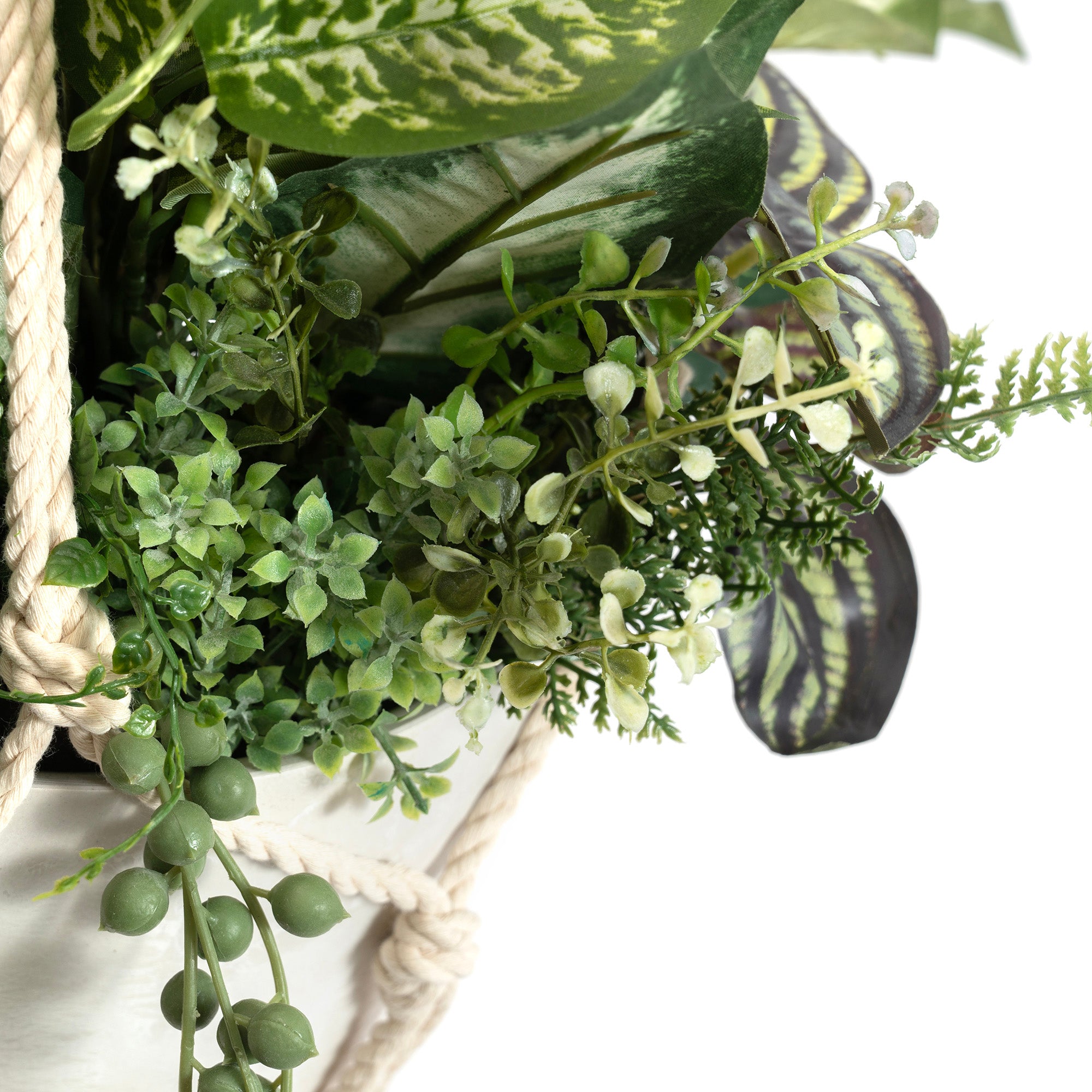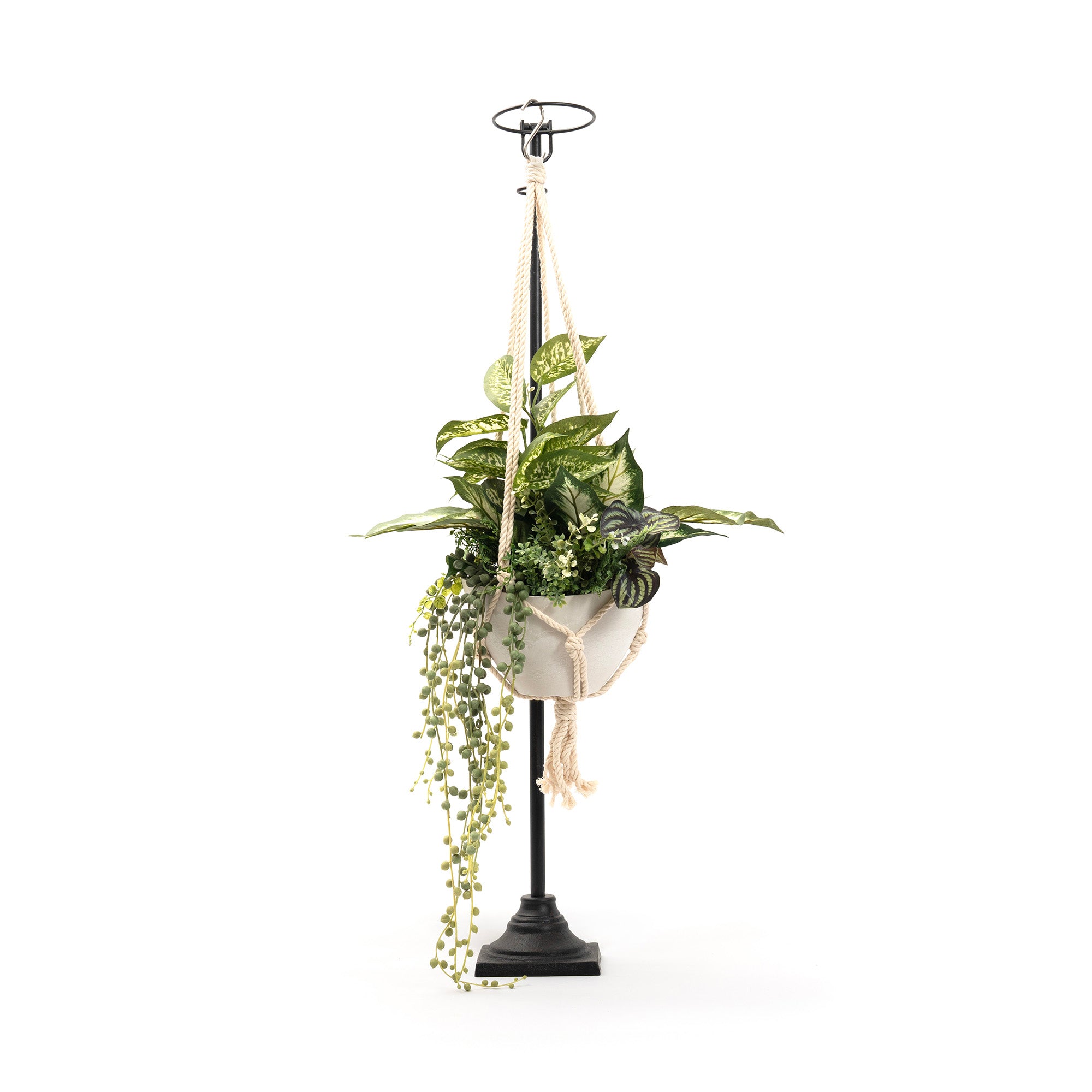 - 花材:グリーンネックレス・ミックスリーフ・ワンダリングジュ―・ディフェンバッキア 資材:ハンギングポット