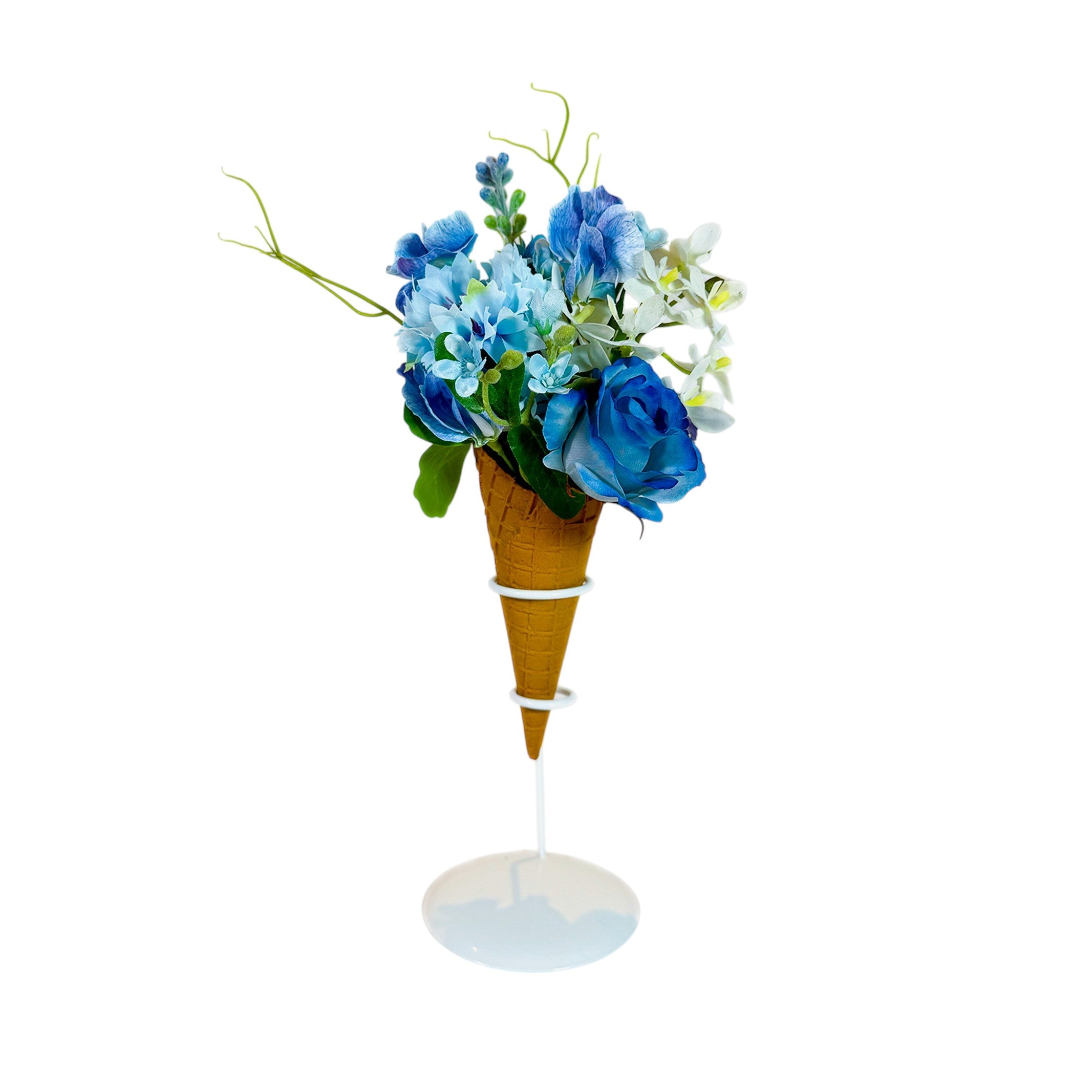 まるでアイスクリームのような可愛らしさ。ワッフルコーンに入ったブーケは、見た目のインパクトも抜群。付属のカップホルダーを使えば、玄関やカウンター、デスクの上などにそのまま飾れます。ブーケ部分だけを取り外して、お気に入りの花器に移すことも可能。渡しやすく飾りやすい、自由にアレンジできるおしゃれなアイテムです。