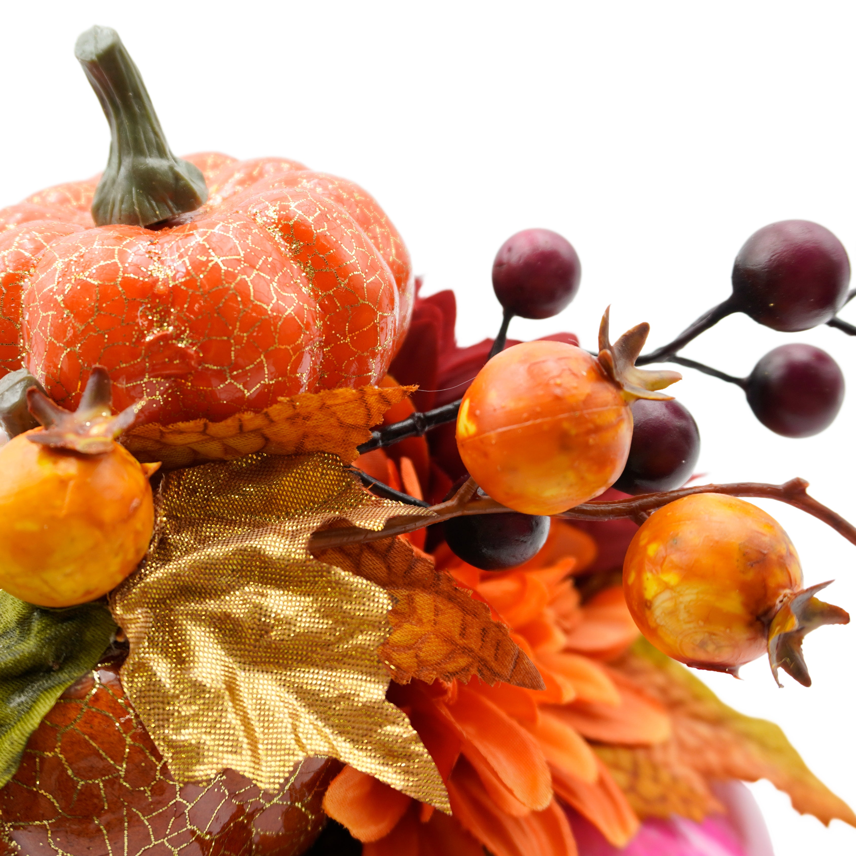 - かぼちゃランタン/花材:造花(かぼちゃ、ベリー、ダリア)