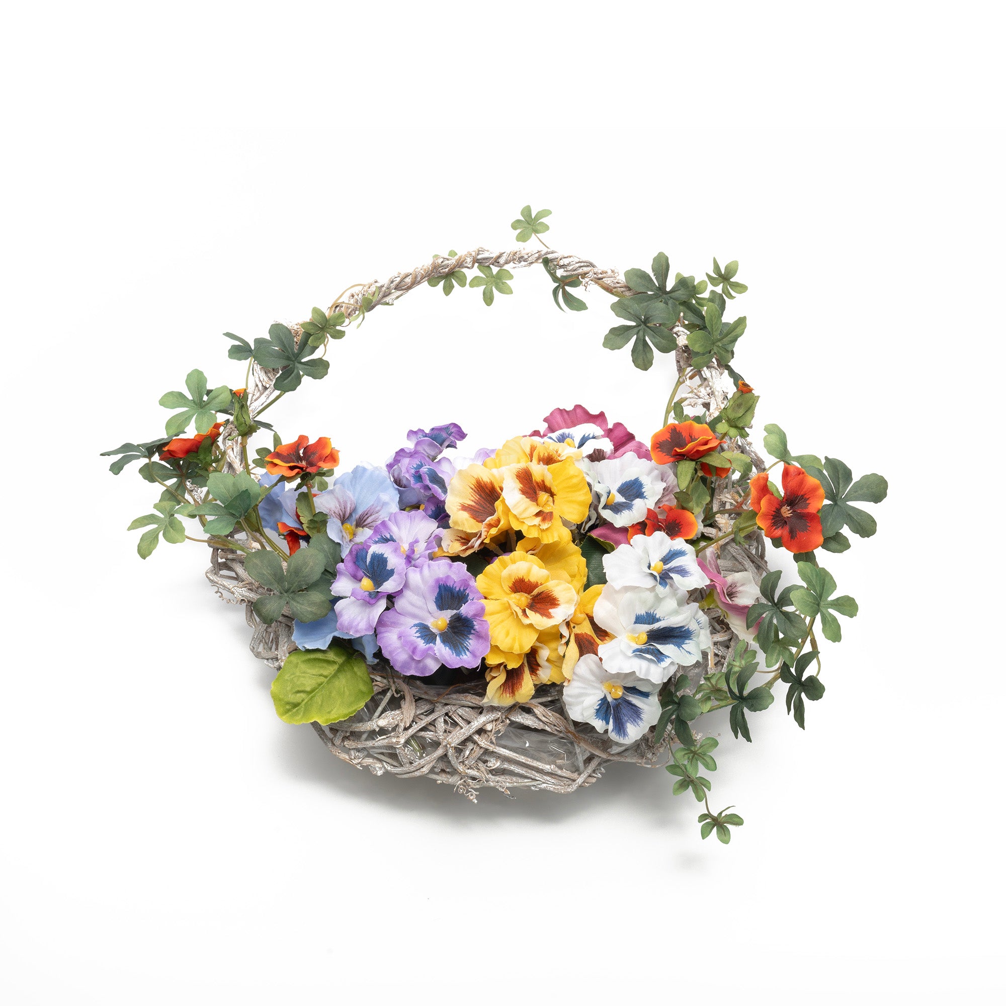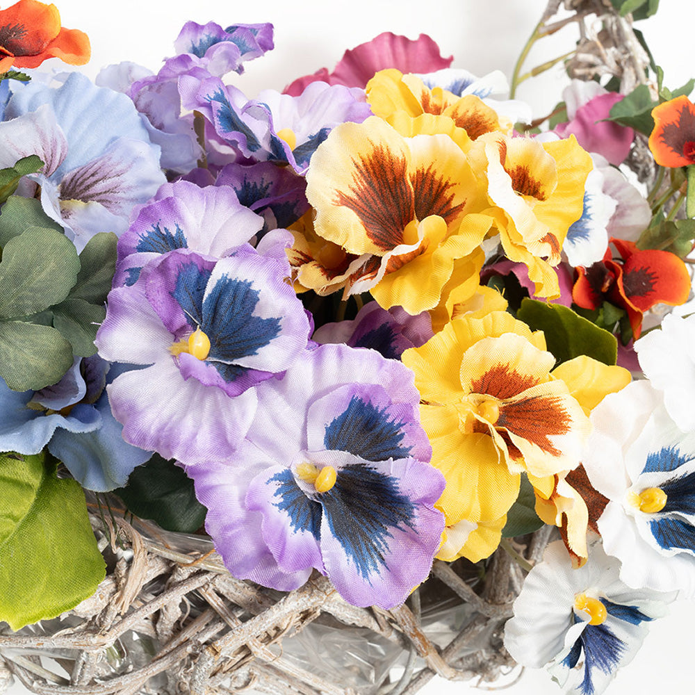 思わず抱えたくなる、カラフルパンジーバスケット
