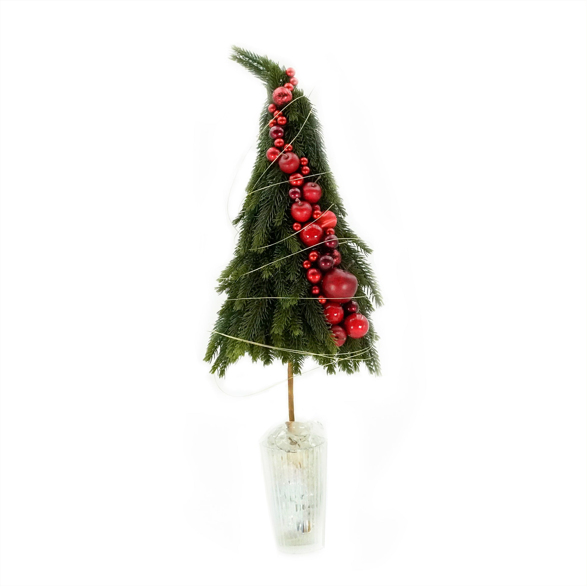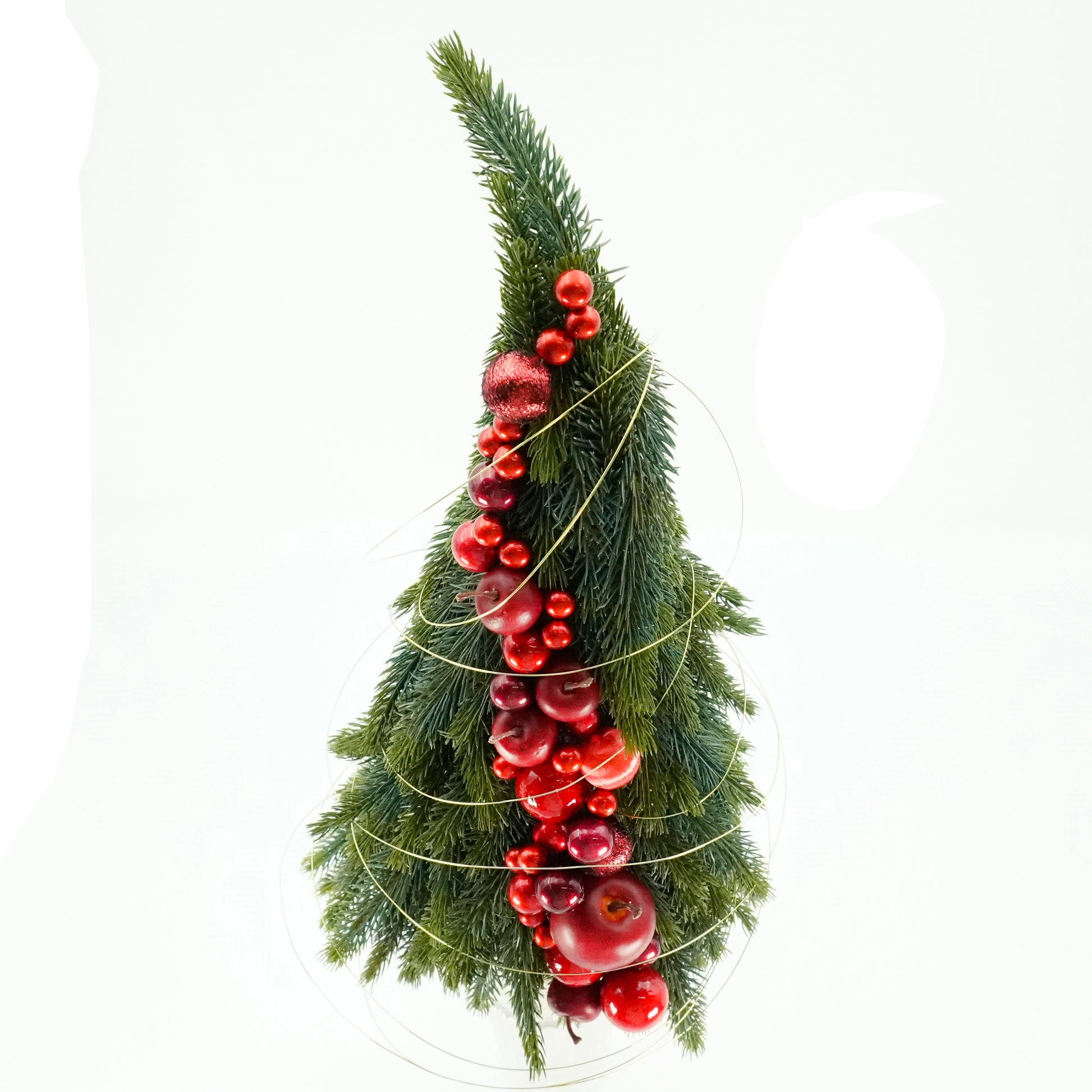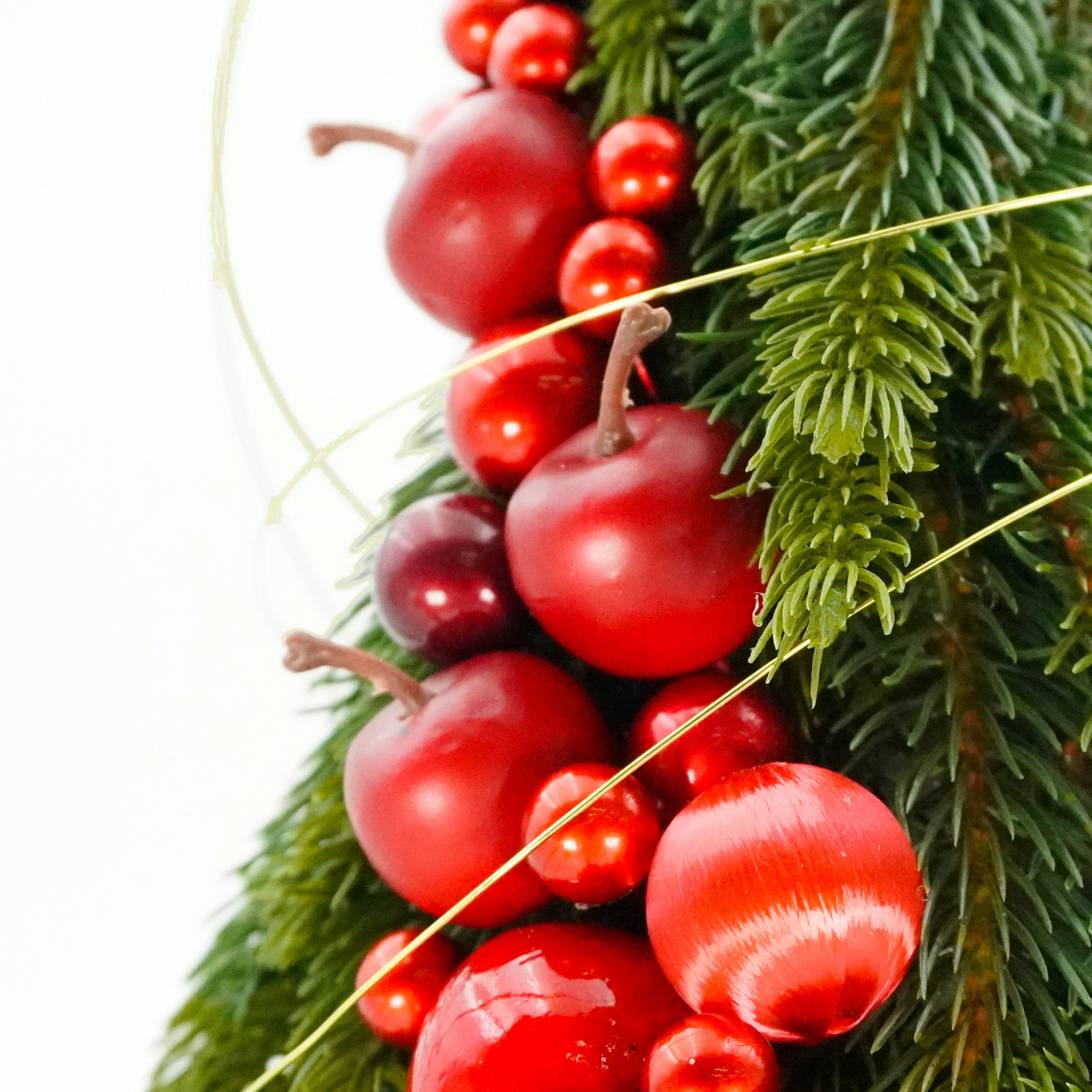 パインミニツリーは、松をベースとした小さなツリーです。赤い実や林檎で流れる星屑を表現しつつ、ゴールドのワイヤーは土星をイメージさせます。スモールサイズなので、どんな場所にも置くことができ、クリスマス気分を存分に楽しめます。
