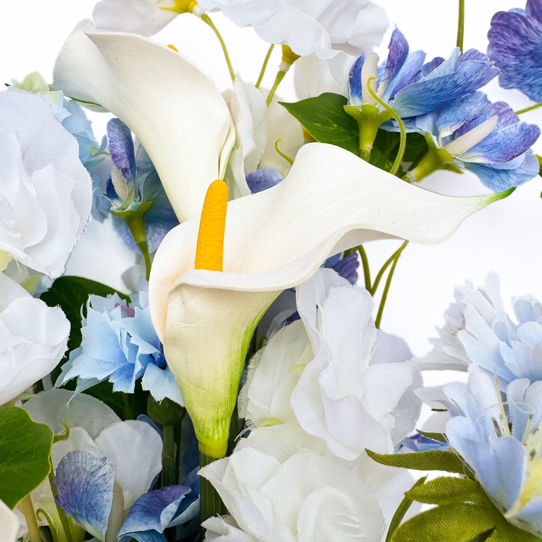 中でもこのブーケは、中心に佇むホワイトのカラーとスイートピーやブルーのスイートピーとニゲラが品よく、エレガントな雰囲気です。ウェディングのデコレーションにも使える清楚さ、知的さを兼ね備えているので、上品なお母様にお似合になることでしょう。通常のカーネーションの花束では満足できない方への贈り物としてもおすすめです。<付属品のリボンボウのカラーはお選び頂けません。掲載写真のブルーカラーでお届け致します>