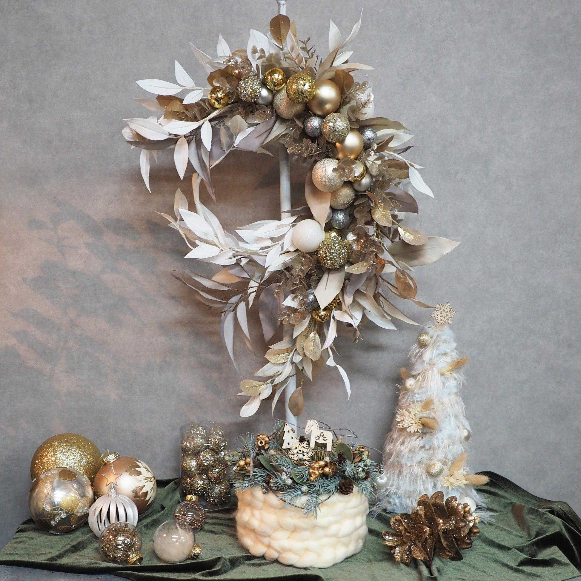 ゴールドとシルバーで作り出す贅沢カラーのクリスマスリース