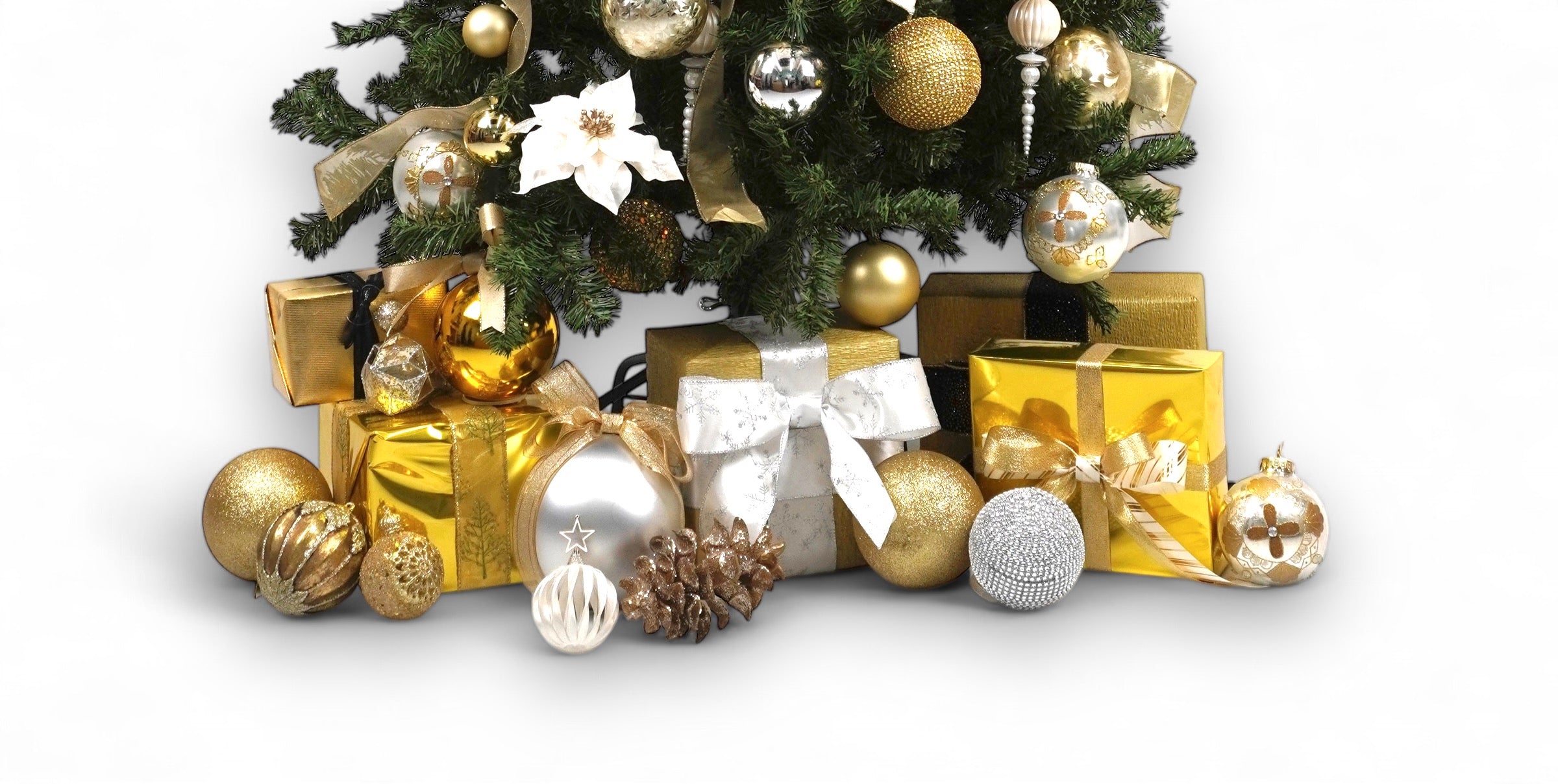 2Mツリーの足元のギフトボックスやオーナメントをオプションにてセット購入可能。