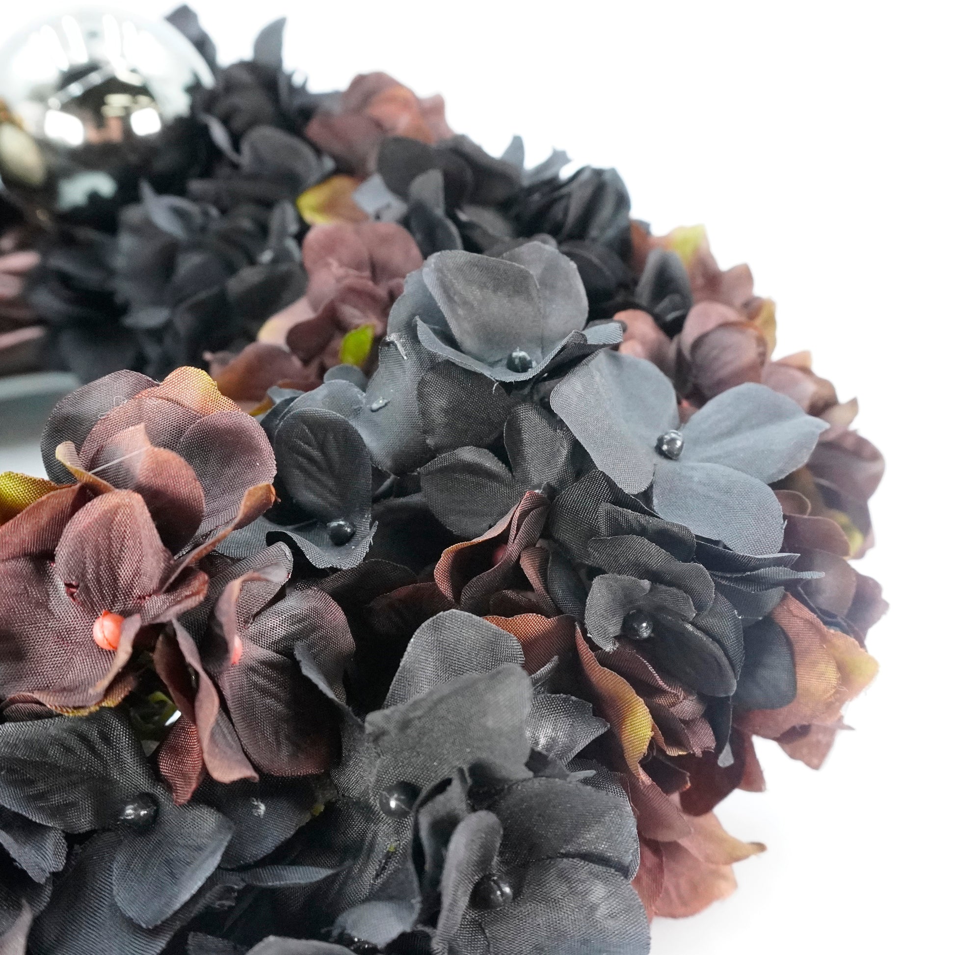 ダークカラーの中でもブラウンを取り入れることで、上品かつシックな雰囲気を演出します。ゴールドの模様が美しいベルベットのリボンにより、大人の雰囲気を醸し出し、お玄関をゴージャスでラグジュアリーな空間に変えてくれます。クールでオシャレな印象を与えるリースです。